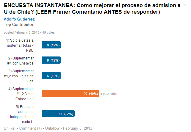 ENCUESTA: Como mejorar el proceso de admision a U de Chile?